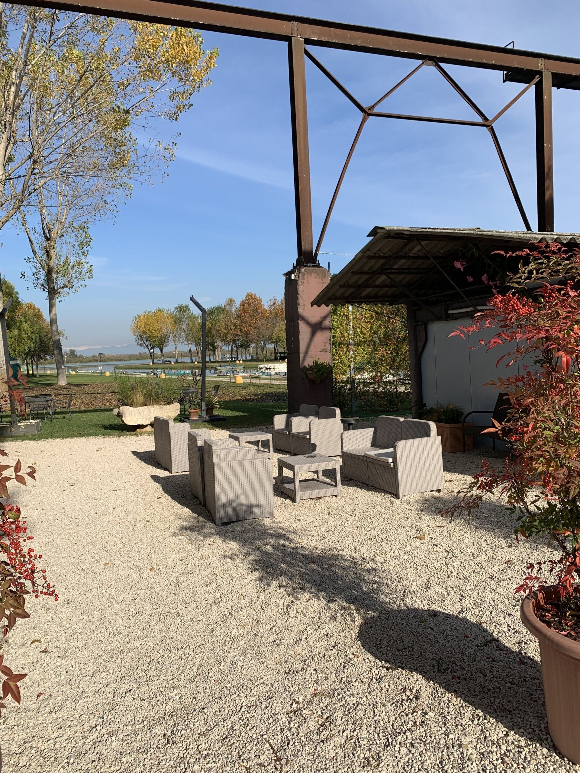 Das Camp befindet sich auf dem gepflegten und abgesperrten Hafengelände des Amici del Lago, mit einem Einkaufszentrum, Decathlon und weiteren Supermärkten in unmittelbarer Nähe.