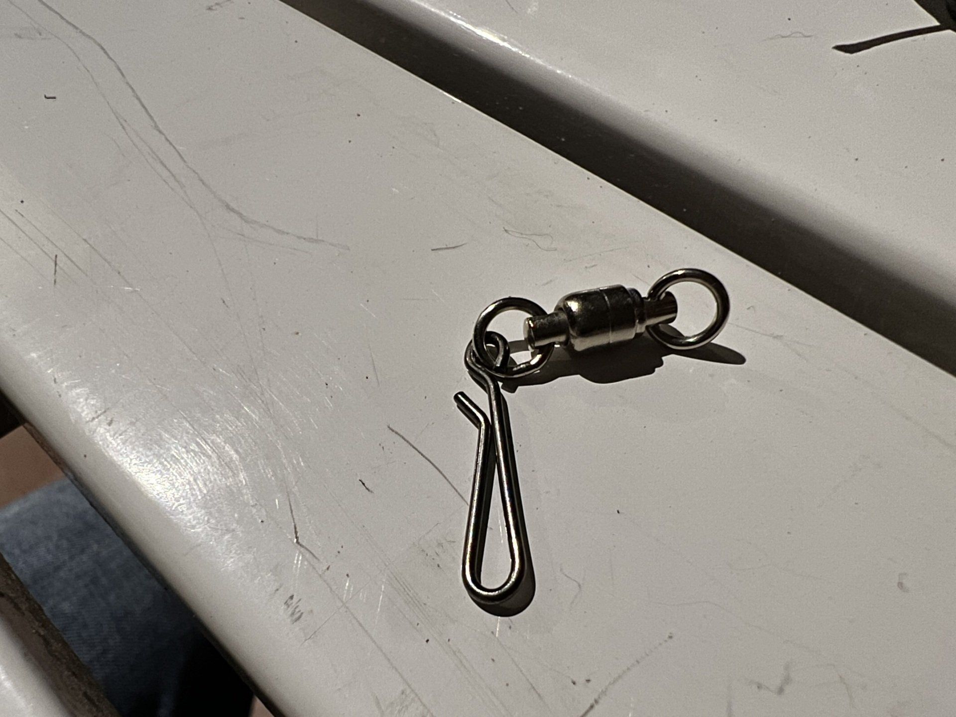 So nehme ich mir meinen Kugelgelagerten Wirbel, auf den ich an einer Seite einen Easy Clip aufbiege und in die Öse des Wirbels wieder befestige (zubiege).
