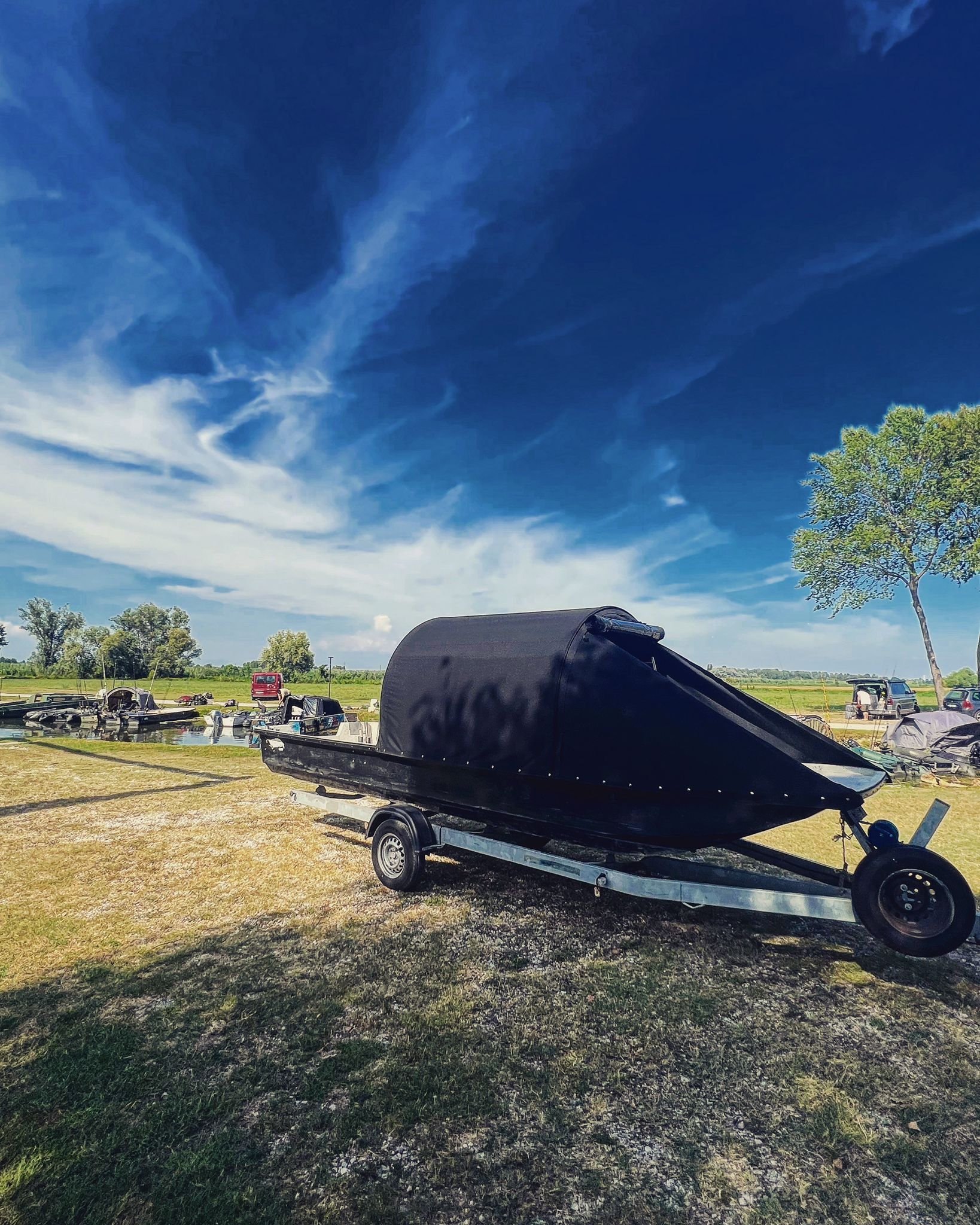 Als Benni und seine Gäste dann auch aus dem Hafen fuhren um ihre Welsplätze für die Nacht zu beziehen schlossen wir uns Benni an und er schleppte uns mit seinem Boot Flusslauf wo wir noch die „Pools“/ die Nebengewässer des Hauptflusses Mincio, welcher in den Lago Superiore mündet befischten wollten.